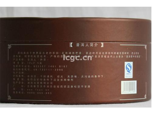 【 名 称 】普洱人(袋泡茶) 【 规 格 】2克/袋 12袋/盒 【 工 艺 】熟茶 【生产日期】2009年 【产品简介】原料来自于世界最古老的茶园——云南芒景、景迈的万亩古茶园和邦崴古茶树茶园。产品有杰出的制茶专家,精湛的制茶技术,严格的质量控制体系控制,使所产普洱茶被业内人士誉为“普洱茶中的瑰宝”。