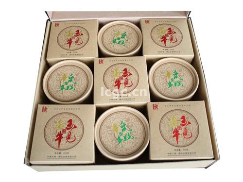 【 介 绍 】农历已丑年是中华人民共和国成立六十华诞的大喜之年,风调雨顺、经济复苏、举国欢腾,喜上加喜。时值茶市回暖之际,澜沧古茶公司诚献“玉见金牛”之高端“金沱”“玉沱”,愿爱茶人生活金灿玉润,其乐融融。