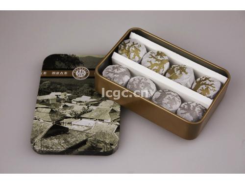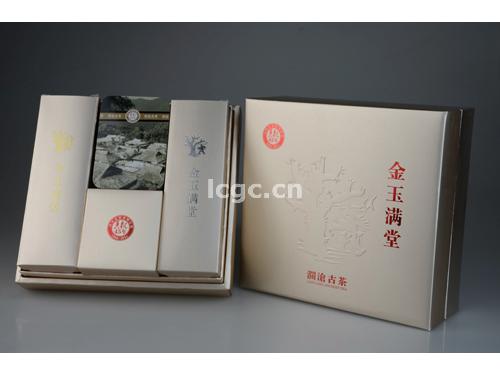【名称】金玉满堂 【规格】3g-5g/沱,132沱/盒 【工艺】熟茶 【生产日期】2011年8月26日 【产品简介】本产品适宜现代快捷、简便的生活方式。原料选用多年宫廷芽头拼配而成。同一种原料用不同的制作工艺制成,呈现不同的口感。汤色红亮,香气纯正,滋味浓厚、甜醇回甘。