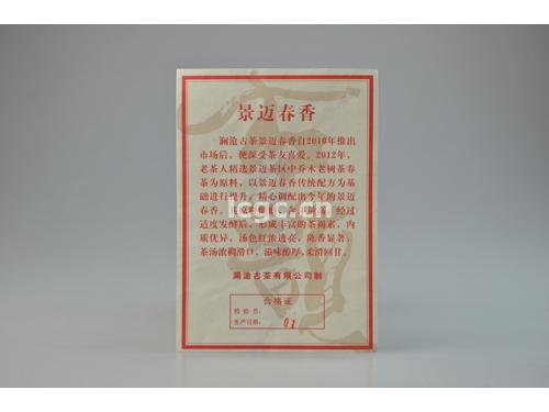 【产品简介】澜沧古茶景迈春香自2010年推出市场后,便深受茶友喜爱。2012年,老茶人精选景迈茶区中乔木老树茶春茶为原料,以景迈春香传统配方为基础进行提升,精心调配出今年的景迈春香。其原料细嫩,含芽量高,经过适度发酵后,形成丰富的茶褐素,内质优异,汤色红浓透亮,陈香显著,茶汤浓稠滑口,滋味醇厚,柔滑回甘。