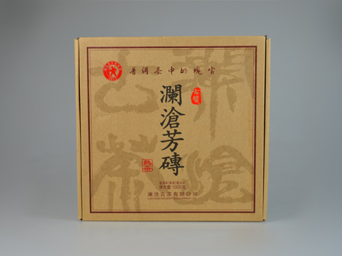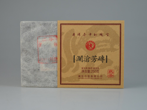 【名称】澜沧芳砖(熟茶) 【系列】古韵系列 【规格】250g/砖,4砖/盒,12盒/件 【工艺】熟茶 【生产日期】2013年4月8日 【产品简介】本品选用2012年乔木老树茶为主原料,拼配部分有一定年份的古树茶原料,采用普洱茶传统制作工艺适度发酵,高温蒸压而成。其干茶色泽乌润,砖面条索紧结,金毫显,汤色红浓透亮,香气纯正浓郁,滋味浓厚、绵绸,回甘显,乃生活中不可多得的健康饮品。