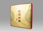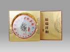 【名称】福瑞祥和(2.5公斤大饼) 【系列】古韵系列 【规格】2500g/片/盒,6盒/件 【工艺】生茶 【生产日期】 2013年7月18日 【产品简介】源于云南千年景迈茶区茶园。选自云南省澜沧江流域的大叶种乔木古树茶老树茶为原料,经手工挑选,精心拼配,高温蒸压而成。其汤色金黄、透亮、香气纯正、滋味回甘,是不可多得的健康饮品和馈赠朋友的送礼佳品。