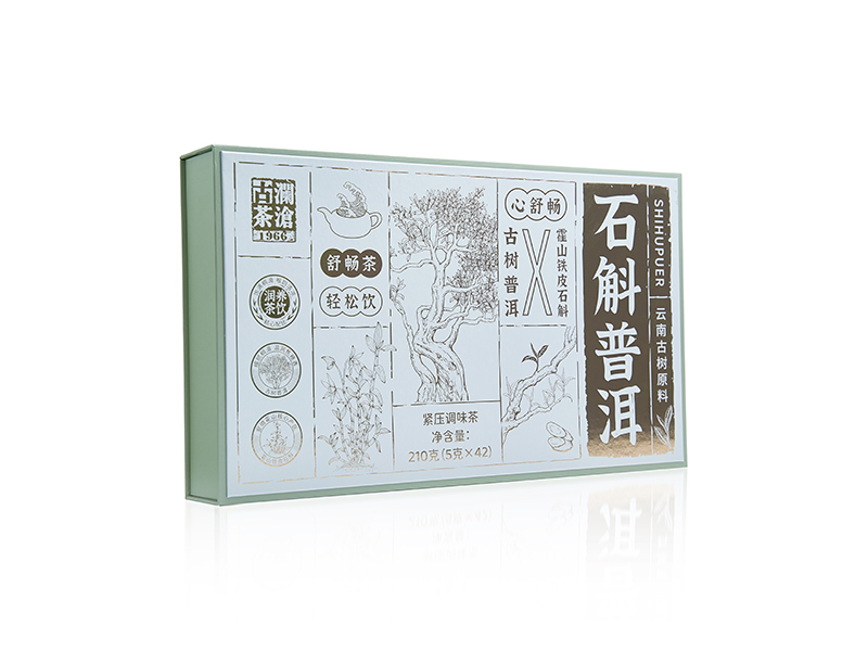醇厚古树熟茶与胶质满、出汁快的霍山铁皮石斛薄片,精心配比而成。茶香中纳入石斛的清新草木甜香,冲泡后醇厚顺滑,因石斛胶质释放,茶汤质感更为饱满稠滑,回味悠长,喉韵清凉,饮后齿颊留香。